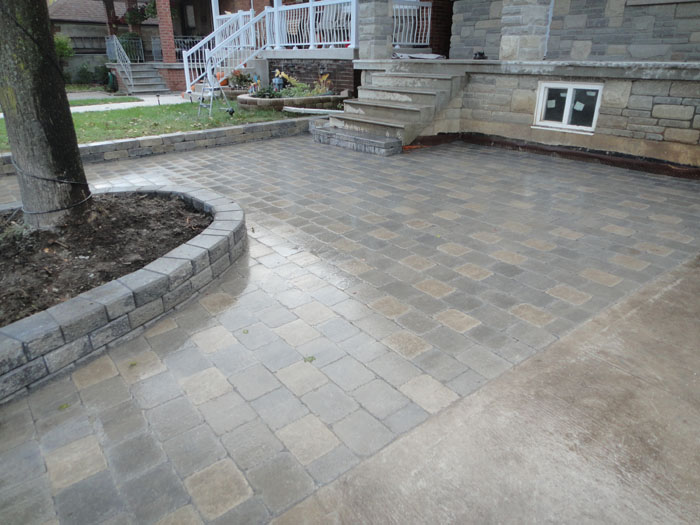 Concrete pavers can make our outdoor living spaces functional, beautiful and enjoyable. With new modern products, we can make any area relaxing. New lines of pavers come with many different shapes, sizes and colours. They can be incorporated almost in endless ways to achieve whatever you can imagine. Some of the products look so natural that you can't say if it is natural or man -made. With a personal touch, your backyard can become your favourite place to spend time with family and friends. If you are not sure what exactly you want to do, we will give you options and alternatives to help you find what suits you the best both financially and ecstatically. Some of the works we do with pavers are: patios, sidewalks, driveways, retaining walls, flower boxes, steps... Please look at someof our pavers and landscaping applcations below.